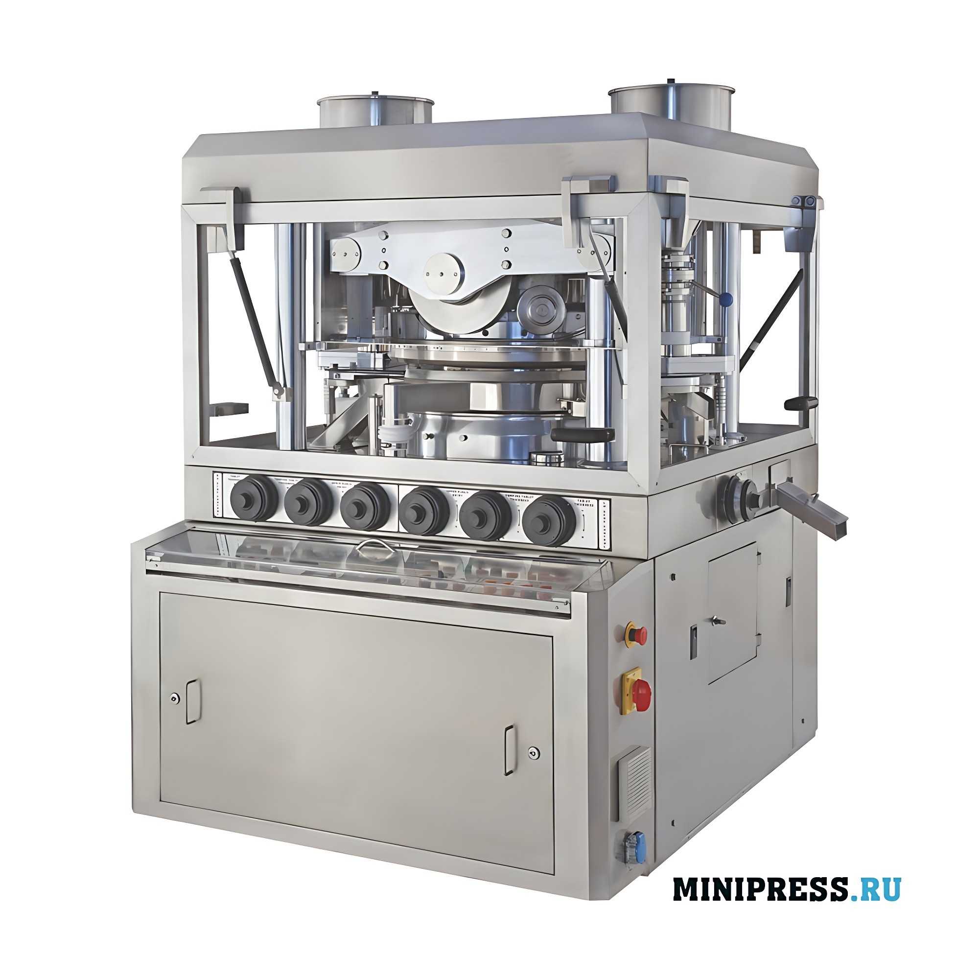 Imprensa giratória de alta velocidade da tabuleta. Alta pressão. Grandes comprimidos. Comprimidos encaracolados. Alta precisão. Alta velocidade. Controlo PLC. Equipamento de alta qualidade baseado em tecnologia avançada e em projeto razoável. O novo design das prensas de comprimidos de alta velocidade foi desenvolvido com base em muitos anos de experiência em produção e permitiu padronizar e lançar em produção em massa uma prensa de comprimidos modular de alta velocidade. A construção do aço inoxidável de alta qualidade cumpre com o padrão DO PBF, um sistema de proteção especial contra a graxa e a poeira, o projeto de janelas de isolamento facilita a desmontada da estrutura para a manutenção e a limpeza. A câmara do compressor fornece uma visão 360, o que é conveniente para monitorar…