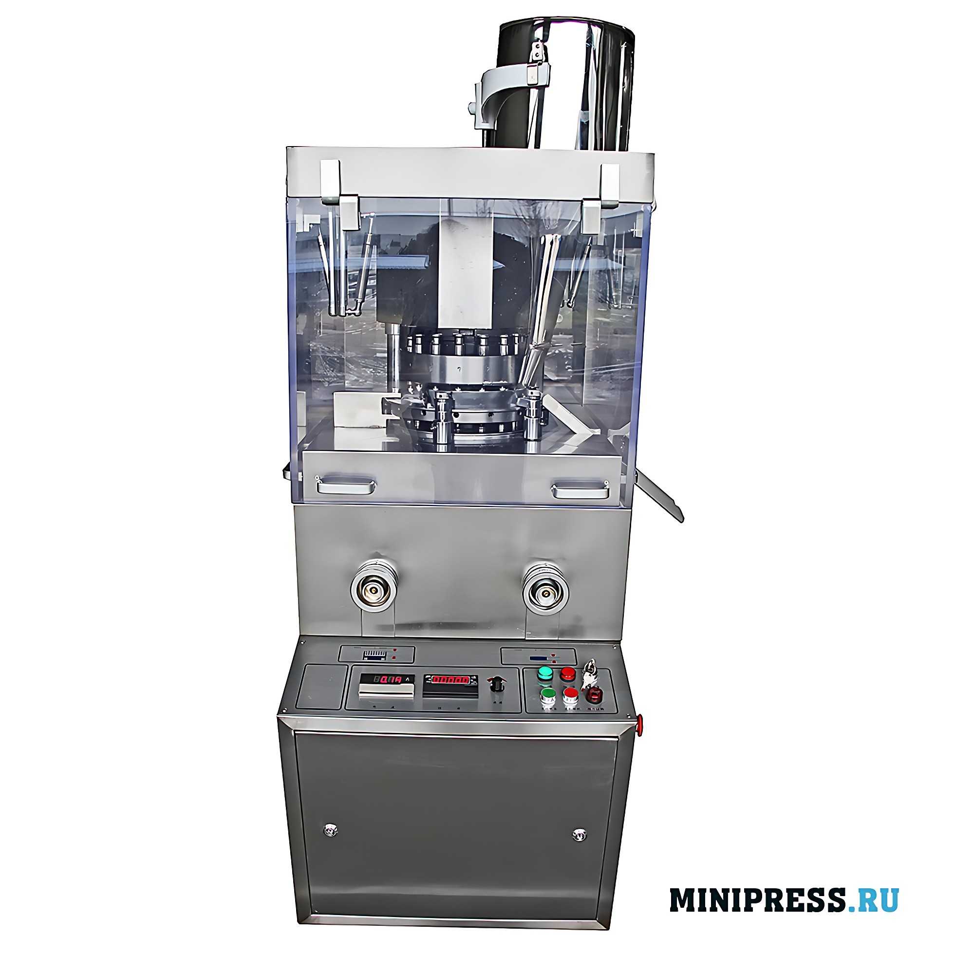 Máquina de prensagem automática de comprimidos para prensagem de pós e misturas de comprimidos em lotes de comprimidos. A imprensa giratória da tabuleta é fácil de estabelecer-se. O modelo RZ-17 é um tipo imprensa giratória do carrossel. O princípio de funcionamento da prensa é Transferir, por meio de uma caixa de engrenagens, a rotação do motor elétrico para a polia, no eixo do qual o rotor está localizado. A imprensa giratória da tabuleta é projetada pressionando tabuletas da massa preparada da tabuleta. A produtividade é ajustável até 30600 tabuletas pela hora, maior o diâmetro das tabuletas, mais baixa a velocidade da pressão. Completo com moldes: matrizes de diferentes diâmetros (de 6 a 20 mm) e punções. Os perfuradores com corpo longo são superiores e instalados na parte superior da prensa. Socos com corpo curto e parte de trabalho longa são mais baixos e sua tarefa é empurrar o comprimido para fora do dado. Eles são instalados na parte inferior da prensa. A prensa funciona no modo automático. Antes de conectar a impressora à rede e iniciar o trabalho, é necessário estudar cuidadosamente as instruções em vídeo e familiarizar-se com os princípios de seu funcionamento. Depois disso, seu funcionamento se tornará claro e simples para você. A prensa possui um motor elétrico, bem como uma roda de depuração com uma alça. Todos os ajustes e ajustes são feitos manualmente girando a roda. Tenha cuidado ao conectar o motor elétrico, a direção deve corresponder à seta. O pó é carregado na prensa através de uma tremonha em forma de funil. Pode ser facilmente removido, enxaguado e reinstalado. O pó é alimentado a partir da tremonha através de um alimentador. Um alimentador ativo com alimentação forçada do pó no dado está igualmente disponível. Quando o rotor da prensa gira, o pó é alimentado na matriz, onde é pressionado e, em seguida, o comprimido acabado é empurrado para a superfície. No corpo da prensa existe uma unidade de controlo. Nós podemos produzir todos os grupos de ferramentas da imprensa (perfuradores e dados para imprensas giratórias da tabuleta).
