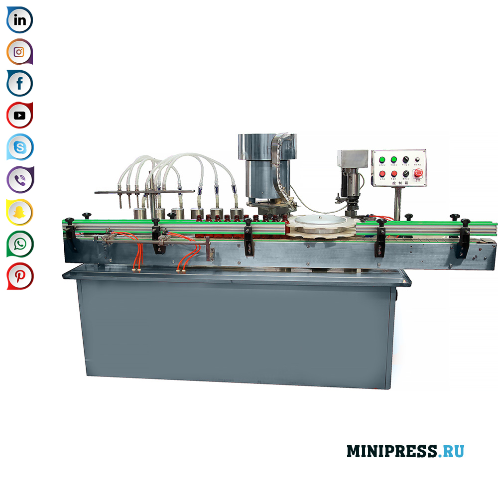 Sistemi ushqen shishe bosh plastike ose qelqi individualisht mbi një rrip transportues që lëviz shishet në njësinë e mbushjes. Makina mbush katër shishka në të njëjtën kohë. Sensorët optikë monitorojnë praninë e shishkave. Nëse nuk ka shishe, nuk ka shishe. Nga xhufkat vibruese kumulative, kapakët futen në njësitë e mbylljes, ku shishet mbyllen me kapele, dhe kapakët janë të dehur në mënyrë mekanike duke përdorur koka rrotulluese. Shishet e gatshme hiqen me një rrip transportues shtesë. MMakina është një pajisje mbushëse në një linjë transportuese për zgjidhje me gojë, e cila përdoret për të mbushur dhe vulosur shishe plastike me një vëllim prej 10-250 ml. Operacioni i mban dhe Vulosje është i burgosur në këtë makinë me dizanin e tij të parë dhe të ashpërsuar. Randesi e madhe i kushtohet Stabilitit të shohim. Për të marrë një vend për blerjen e kësaj, ne rikomandohemi e fotve dhe madhezive të shohim dhe kemi të bëjmë me një gjë të tillë.