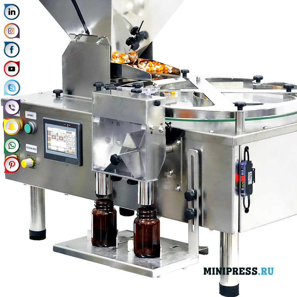 يتم تحميل أقراص أو كبسولات الجيلاتين في صندوق التخزين. بواسطة الاهتزاز من النطاط ، يتم أخذ الأقراص في أجزاء على طاولة دوارة. بواسطة قوات الطرد المركزي ، يتم إرسال الأقراص إلى وحدة التحكم. هذه الوحدة لديها جهاز استشعار بصري ياباني. باستخدام لوحة تحكم الكمبيوتر ، يتم تعيين العدد المطلوب من الأجهزة اللوحية للحساب. بعد أن طار آخر قرص خلف المستشعر ، يتحول الحاجز من زجاجة إلى أخرى. القدرة على عد الأحجام المختلفة: كبسولات (حجم 000-5) ، أقراص ، حبوب ، سدادات وغيرها من المنتجات المماثلة ، بعرض 3 مم - 30 مم ، ارتفاع فوق 3 مم ، شكل عادي ومنتظم. برنامج PLC ، واجهة لوحة اللمس ، سهولة الصيانة ، لا يحتاج الموظفون إلى تدريب خاص. العلبة والمكونات مصنوعة من الفولاذ SUS 304 و SUS 316 وتفي بمتطلبات GMP. التحكم في السرعة المتغيرة للاهتزاز قادوس التغذية والسرعة الدوارة. جهاز تخزين الغبار لحماية المعدات. يستخدم الزجاج المقسى للقرص الدوار. Keyence ، جهاز استشعار الألياف البصرية عالية الدقة المصنعة في اليابان ، عد الدقة accuracy 1 جهاز كمبيوتر. اثنين من فوهات العد المستمر وملء ، والانتقال التلقائي.