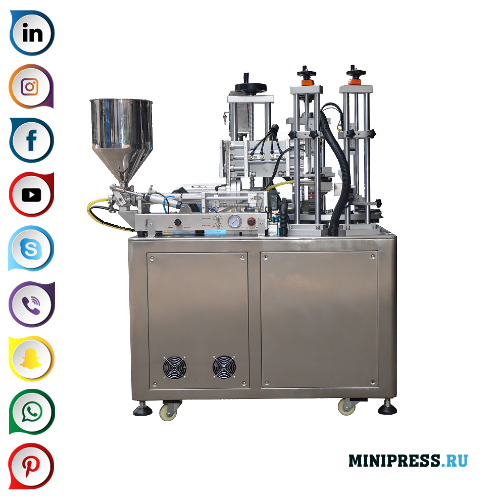 Պլաստմասե խողովակներ և ուլտրաձայնային կնքման եզրեր քսուքներով և քսուկներով լցնելու կիսամյակային սարք: Այն լրացվում է խողովակի դիրքի կողմնորոշման գործառույթով, ըստ խողովակի վրա տպված պիտակի: Կիրառվում է դաջված դաջված համակարգը և լոտի քանակը: Գոյություն ունի նաև խողովակի եզրին կտրելու մեխանիզմ: Օգտագործվում է կոսմետիկայի, դեղամիջոցների, սննդի արտադրության մեջ: Հաճախորդը պետք է ապահովի խողովակների չափերը: Արտադրողը պլաստիկ կաղապարներ է պատրաստում հաճախորդի խողովակների չափսին: Դիզայնը պտտվող սեղան է `10 անցքով, խողովակի տրամագծի համար պլաստիկ բաժակ տեղադրվում է յուրաքանչյուր անցքում: Օպերատորը կատարում է միայն մեկ գործառույթ `տեղադրում է ապակու դատարկ խողովակներ: Խողովակը լցնելը, կողմնորոշվելով լուսանկարչական նշանի համաձայն, եզրերը կնքելը և պատրաստի խողովակը դուրս մղելը կատարվում է ինքնաբերաբար: Դոզայի պարզ և ինտուիտիվ դոզան կարգավորումներ: Անհրաժեշտության դեպքում, դուք կարող եք պատվիրել կաղապարների հավաքածու `բոլոր խողովակների հետաքրքրությունների համար: Խողովակի ծայրը փակվում է օդաճնշական շարժիչով: Շրթունքների բարձրությունը ճշգրտվում է խողովակի բարձրությանը.