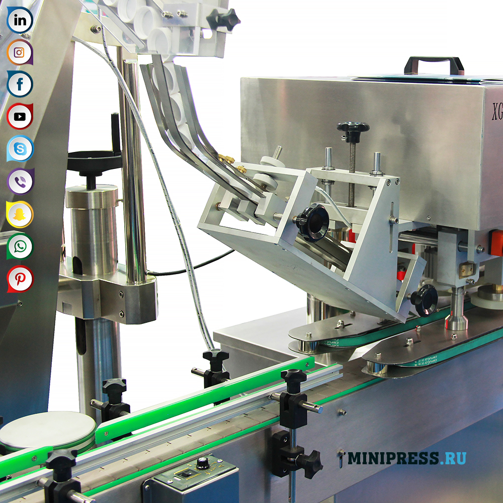 Машината може да се използва за затваряне на винтови пластмасови бутилки и флакони с капачки. Напълно автоматичен работен процес с контрол на всички пускови системи. Много здрав дизайн.