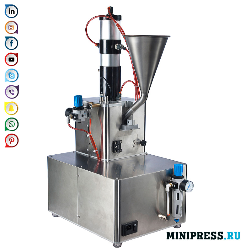 La premsa és totalment automàtica, la pressió sobre la pólvora la realitza un cilindre pneumàtic. L'expulsió de la tauleta acabada accionada mecànicament. Distribuïdor de pols, principi de dosificació: dosificació volumètrica. Hi ha ajustaments de pes de les tauletes acabades i esforços de premsa. Després d’un breu procediment d’instal·lació en mode manual, la premsa de tauleta pot funcionar en mode automàtic. Només cal abocar la pólvora a la tremuja. També es poden demanar despeses addicionals per motlles. Recomanem aquest model per a laboratoris i petites indústries on la qualitat de les pastilles acabades i la seva puresa són molt importants.