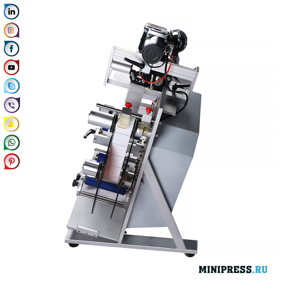 Operatøren placerer flaskerne manuelt på ruller og trykker derefter på håndtaget med en ekstra rulle. Systemet tændes automatisk og trækker etiketten fra rullen og trykker på etiketten. Kompakt struktur og nem betjening. Fotoelektriske kontrolelementer, mærkningsnøjagtighed, "ingen objekt - stop" -funktion, automatisk kontrol af en manglende etiket. Hoveddelen af etiketteringsmaskinen er lavet af rustfrit stål SUS304. Mulighed for at bruge forskellige størrelser af etiketter. Systemet med at trykke etiketten til kassens overflade undgår luftbobler. Arkiver etiketter fra en rulle med en trinvis elektrisk motor. Om nødvendigt kan du tilføje udskrivningsfunktionen for serien, numrene og produktionsdatoen. Det udstyr og materialer, der anvendes til fremstilling af rustfrit stål og højlegeringer, opfylder kravene til GMP-produktion.