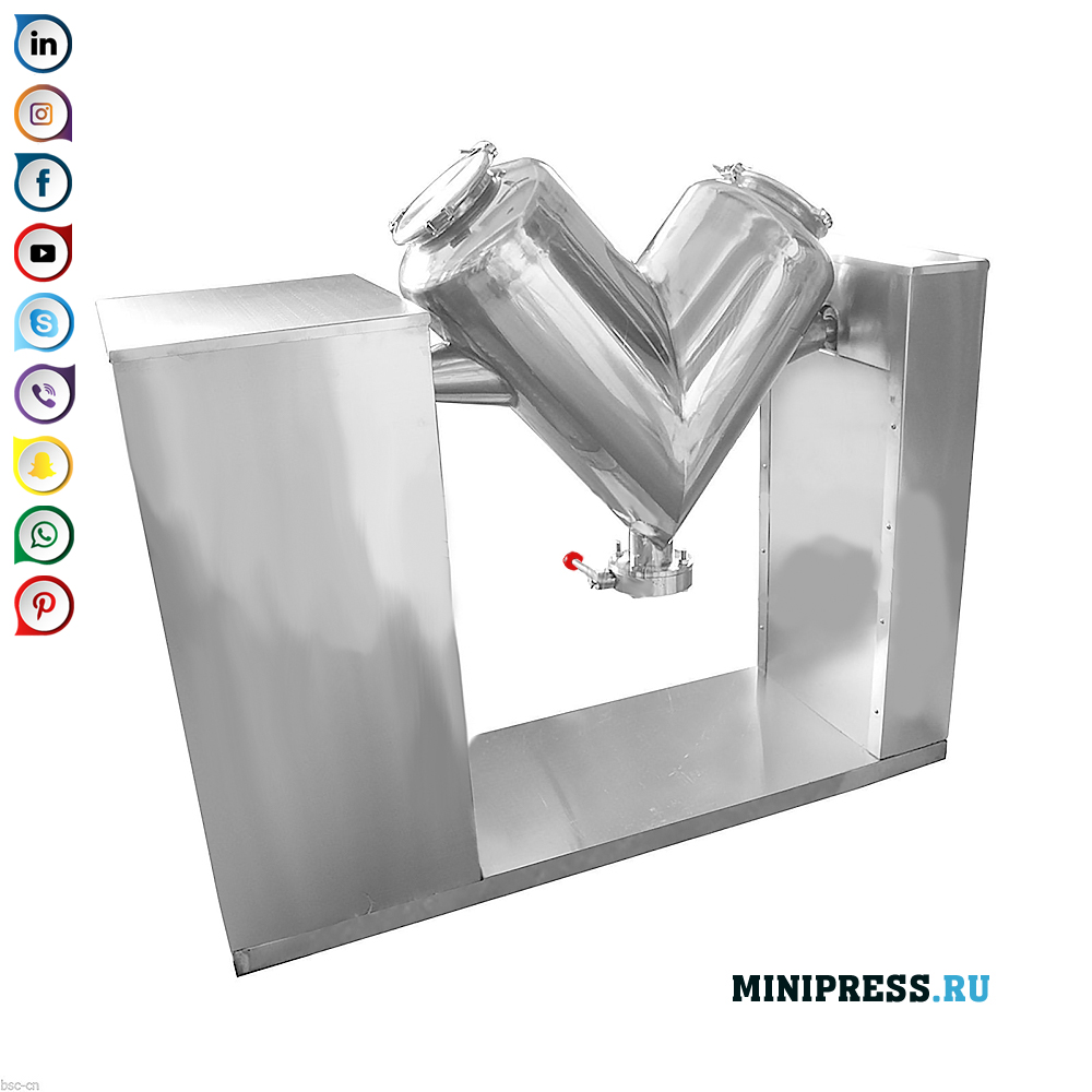 Ο μίξερ είναι κατασκευασμένος από ανοξείδωτο χάλυβα. Οι αναμικτήρες ανάμιξης σκόνης σχήματος V είναι κατάλληλοι για ανάμιξη ξηρών χονδρών σκονών. Η υψηλή απόδοση ανάμειξης επιτυγχάνεται με την παρουσία ενός περιστρεφόμενου άξονα με πέταλα μέσα στην κύρια δεξαμενή. Η κύρια δεξαμενή περιστρέφεται με ταχύτητα 12 στροφών ανά λεπτό και ο εσωτερικός άξονας περιστρέφεται για να ανταποκρίνεται στην περιστροφή της δεξαμενής με ταχύτητα 1500 στροφών ανά λεπτό. Το καλύτερο μοντέλο που είναι από μίκτες σε σχήμα V. Ο μίκτης υψηλής απόδοσης σε σχήμα V δεν έχει τυφλές κηλίδες στους κυλίνδρους με υψηλή ταχύτητα και με ελάχιστο χρόνο ανάμιξης. Η θήκη, οι εσωτερικοί και εξωτερικοί τοίχοι από γυαλισμένο ανοξείδωτο χάλυβα, έχουν μια κομψή εμφάνιση. Η φόρτωση και εκφόρτωση σε σκόνη μπορεί να γίνει είτε με το χέρι είτε με τη χρήση ενός μεταφορέα κενού. Υπάρχουν βαλβίδες ταχείας αποδέσμευσης για την εκκένωση σκόνης. Αυτός ο αναμικτήρας χρησιμοποιείται για την ανάμιξη κονιοποιημένων υλικών στη φαρμακευτική και άλλες βιομηχανίες. Από έναν ηλεκτροκινητήρα, ο άξονας οδηγείται. Η καλύτερη βιομηχανική συσκευή για την ανάμιξη ξηρών χύδην σκονών.