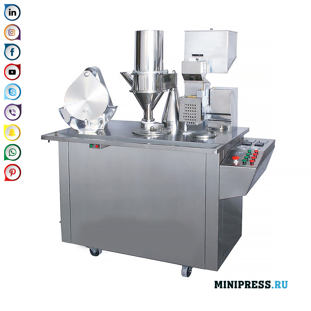 Η μηχανή καψακίων είναι κατασκευασμένη από ανοξείδωτο χάλυβα. Απλό και αξιόπιστο στη χρήση. Τα καλούπια καψακίων κατασκευάζονται με τη μέγιστη ακρίβεια. Ο χειριστής γεμίζει τα καλούπια με κενά καψάκια, τα χωρίζει και τα μεταφέρει για να γεμίσει με σκόνη. Μετά την πλήρωση, ο χειριστής συνδυάζει τις μισές κάψουλες και τις ασφάλειες. Τα τελικά καψάκια με σκόνη μπαίνουν στο κουτί.