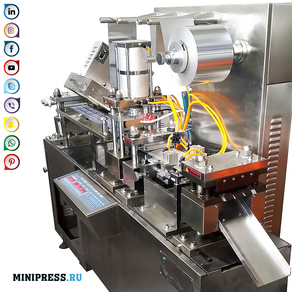 A PVC-fólia tekercséből a gép cellákat képez, amelyeket tablettákkal vagy zselatinkapszulákkal (egyéb termékek) töltnek fel, majd a gép megnyomja a hengerelt alumíniumfóliát és hegeszti a PVC-fóliához. A bélyeg levágásakor a kész hólyagok ki lesznek vágva, és a hulladékot feltekercselik. Ezt a berendezést gyógyászati termékek, élelmiszeripari termékek és elektromos készülékek alkatrészeinek csomagolására használják. A buborékfólia-gépet kifejezetten kórházi körülmények között, intézetek laboratóriumaiban, egészségügyi termékek előállítására tervezték közepes és kis gyógyszergyárakban. Ezt a modellt a kompakt karosszéria méret, a könnyű kezelhetőség, a multifunkcionalitás, a lökethossz-állítás és a tartósság jellemzi. A formahűtést folyó vagy keringő víz biztosítja. Sűrített levegővel rendelkező kompresszorra van szükség.