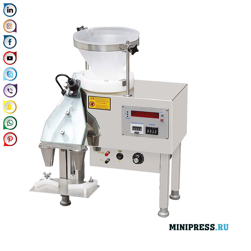 A beállítható tabletták és zselatinkapszulák száma 0-9999. Rozsdamentes acél gépek a GMP előírásainak megfelelően. Könnyen kezelhető, és nem igényel külön képzést. A számítás pontosságát egy speciális elektromos optikai eszköz számítja ki. Rezgő adagolás a gyors és zökkenőmentes működés érdekében. A számlálási sebesség beállítható a pirula palackok kézi helyettesítésének sebessége szerint. A gép belsejét porszívóval lehet felszerelni, hogy elkerülje a portól a gépen.