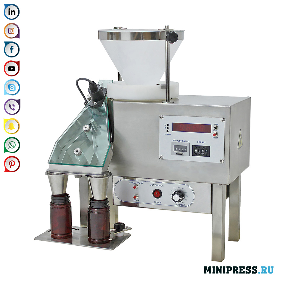 Di bengkel farmasi kami, model ini adalah penghitung tablet. Pengisian langsung ke dua bank dengan dua tangan oleh operator. Kami menyarankan Anda untuk pra-sekrup penutup.