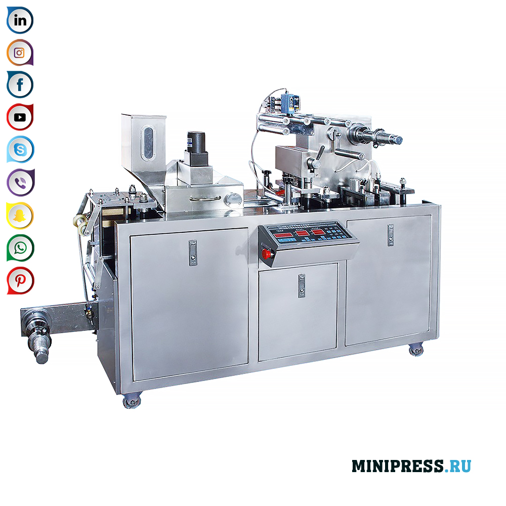 블리스 터 팩에 정제 및 젤라틴 캡슐을 포장하기위한 자동 블리스 터 머신의 범용 모델. 장비 설계는 PVC 및 알루미늄 호일의 압연 포장재로 작업하기위한 시스템을 제공합니다. 이 기계에는 재료 인발 시스템이 있으며 가열되면 PVC 테이프에 셀이 형성되고 분배 시스템이있는 호퍼를 통해 정제 또는 젤라틴 캡슐이 셀에 들어갑니다. 알루미늄 호일은 PVC를 덮고 가열에 의해 용접됩니다. 기성품 블리스 터가 금형에서 잘립니다. 프로세스는 완전히 자동화되어 있으며 모든 가열 시스템은 전자 장치로 제어됩니다. 조판 금속 문자로 만료 날짜 및 배치 번호를 표시합니다. 물을 흐르거나 순환시킴으로써 형태 냉각이 제공됩니다. 압축 공기가있는 압축기가 필요합니다.