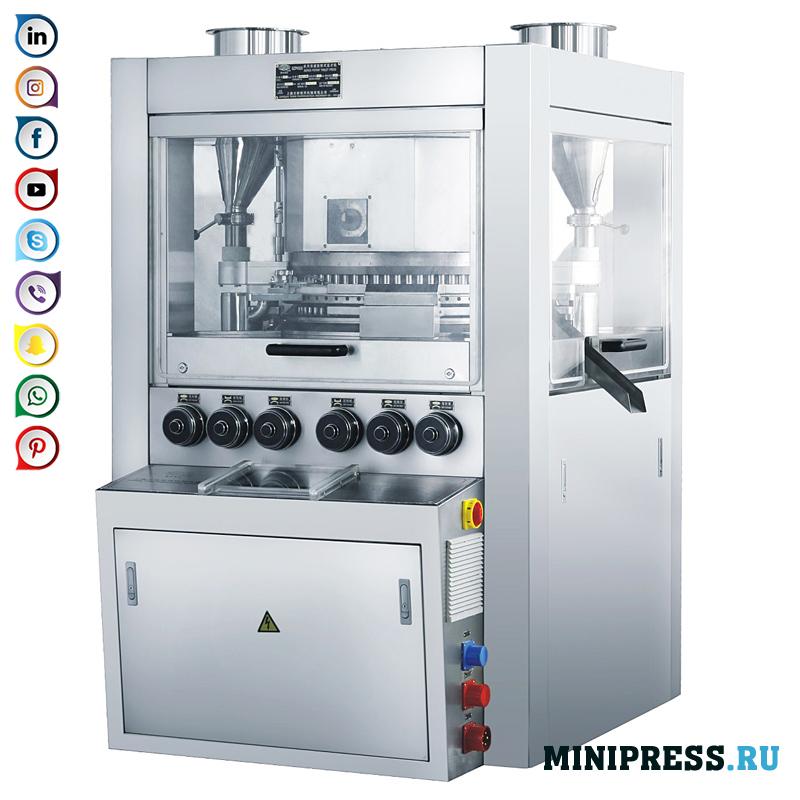 정제 분말의 정제 생산을위한 고속 회전식 정제 프레스. 모델 RZ-49는 캐 러셀 타입의 자동 로터리 프레스입니다. 프레스의 방식은 기어 박스를 통해 전기 모터에서 로터가 위치한 축의 풀리로의 회전을 전달하는 것입니다. 회전식 정제 프레스는 과립 상 분말 덩어리로부터 정제를 프레스하기위한 것이다. 1 시간 동안 최대 105,000 정의 비율로 생산성이 조절됩니다. 이 로터리 프레스 모델은 절연 구획에 완전히 밀폐 된 구획을 채택합니다. 외부에서 교차 오염을 일으키지 않고 완성 된 정제의 순도가 보장됩니다. 압축 실은 의약품 생산을 위해 GMP의 요구 사항에 따라 스테인레스 스틸로 완전히 만들어졌습니다. 마모를 피하기 위해 크롬 스틸 로터 표면. 속도 제어 및 성능은 주파수 변환기로 제어합니다. 모터는 작동 중에 진동과 흔들림을 피하기 위해 플레이트에 연결됩니다. 충격 및 장치로 인한 손상을 방지하기 위해 과부하 보호 장치가 기계에 존재하며 과부하가 발생하면 기계가 자동으로 정지합니다. 기계의 기어 드라이브는 교차 오염을 방지하기 위해 서비스 수명이 긴 완전 밀폐형 오일 윤활제를 채택합니다. 모든 컨트롤러와 장치는 기계와 별도로 위치하여 작동하기 쉽도록 시리즈 기계는 상부 펀치 파손을 방지합니다. 로터 속도는 조정 가능합니다. 이 프레스는 다양한 직경 (12 ~ 25mm)의 다이와 펀치로 금형을 완성합니다. 몸체가 긴 펀치는 상단이며 프레스 상단에 설치됩니다. 짧은 몸체와 긴 작동 부분이있는 펀치가 바닥이며 그 임무는 태블릿을 매트릭스 밖으로 밀어내는 것입니다. 그들은 언론의 하단에 설치됩니다. 프레스가 자동으로 작동합니다. 프레스를 네트워크에 연결하고 작업을 시작하기 전에 비디오 지침을주의 깊게 연구하고 작동 원리를 숙지해야합니다. 그 후에는 작동이 이해하기 쉽고 단순 해집니다. 프레스에는 전기 모터와 핸들이 달린 디버그 휠이 있습니다. 모든 조정 작업 및 설정은 휠을 회전하여 수동 모드로 이루어집니다. 전기 모터를 연결할 때 방향은 화살표와 일치해야합니다. 분말은 깔때기 형 호퍼를 통해 프레스에 로딩된다. 쉽게 제거하고 세척하고 다시 설치할 수 있습니다. 분말은 호퍼에서 피더를 통해 공급됩니다. 분말로 매트릭스에 강제로 분말을 공급하면서 능동 공급 장치에 공급할 수있다. 프레스의 로터가 회전하면 파우더가 매트릭스에 공급되어 프레스가 발생하고 완성 된 태블릿이 표면으로 밀립니다. 우리는 모든 프레스 도구 세트를 주문할 것입니다 (로터리 타블렛 프레스 용 펀치 및 다이).