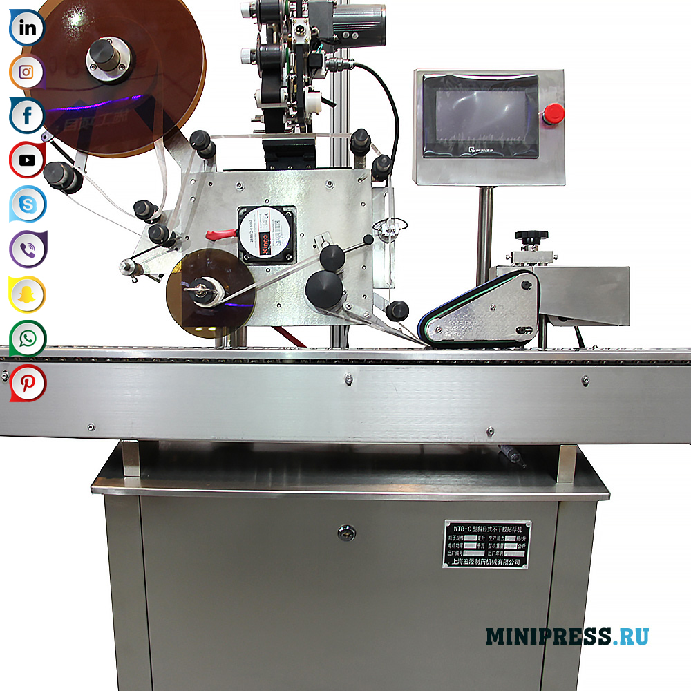 Automatinė sistema horizontaliam butelių tiekimui ant konvejerio juostos. Sistema įsijungia automatiškai ir ištraukia etiketę iš ritinėlio bei paspaudžia etiketę. Kompaktiška struktūra ir paprastas valdymas. Fotoelektriniai valdymo elementai, ženklinimo tikslumas, funkcija „nebūti objekto - nesustabdykite“, automatinis trūkstamos etiketės valdymas. Pagrindinė ženklinimo mašinos dalis pagaminta iš nerūdijančio plieno SUS304. Galimybė naudoti skirtingų dydžių etiketes. Etiketės prispaudimo prie ampulės paviršiaus sistema išvengia oro burbuliukų. Etiketės iš ritinio užpildomos pakopiniu elektriniu varikliu. Jei reikia, galite pridėti serijos spausdinimo funkciją, numerius ir pagaminimo datas. Įranga ir medžiagos, naudojamos nerūdijančio plieno ir aukšto lydinio lydinių gamyboje, atitinka GMP gamybos reikalavimus.