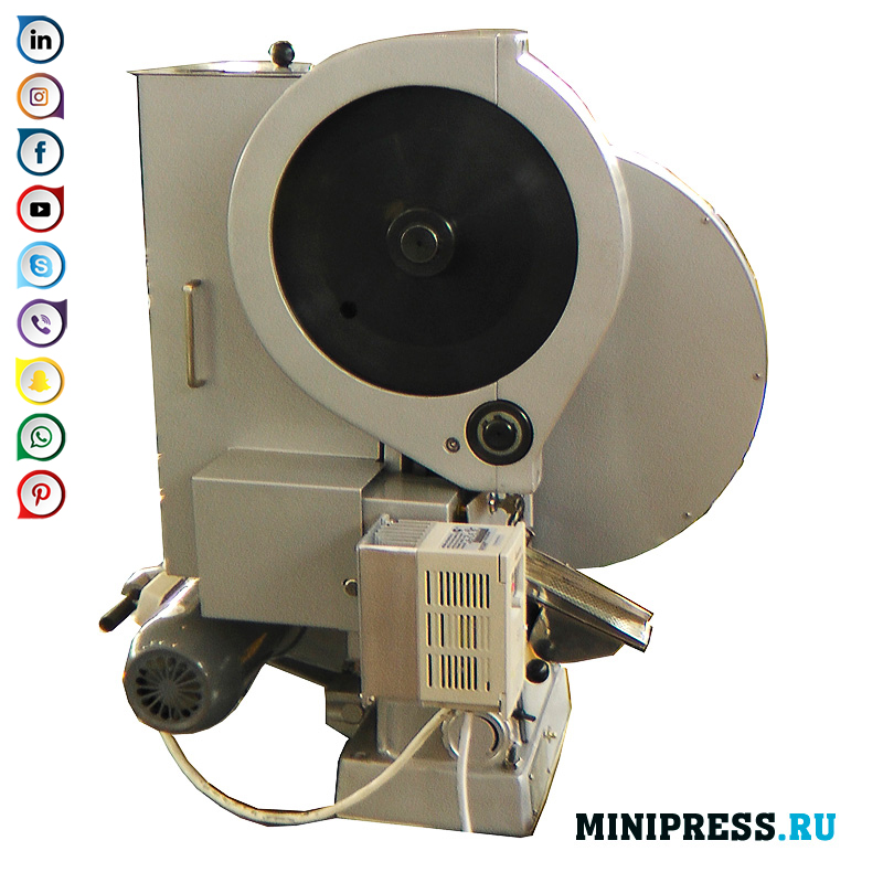 Tablečių presas, kuris gali būti naudojamas farmacijos, chemijos ir maisto pramonėje, miltelių metalurgijoje, norint gaminti tabletes, briketus ir boliusus iš birių miltelių medžiagų. Iš tiekimo bunkerio milteliai dozuojami į matricą. Naudojamas tiesioginis miltelių ir granuliuotų medžiagų presavimas. Tabletės gaunamos dviem štampukais (viršutiniu ir apatiniu) matricoje. Preso įrankio pakeitimas leidžia gaminti tabletes nuo 6 iki 20 mm skersmens. Didžiausias gatavų tablečių aukštis yra 13 mm. Spaudos dizainas numato montuoti vieną, du ir tris pozicinius štampus, tuo tarpu vienam presavimo ciklui - 3 tabletės, kurių skersmuo 7 mm, arba 2 tabletės, kurių skersmuo yra 10 mm, arba 1 tabletė, kurių skersmuo yra 20 galima gauti mm. Spauda veikia automatiškai. Prieš prijungdami spaudą prie tinklo ir pradėdami darbą, turite atidžiai išnagrinėti vaizdo įrašo nurodymus ir susipažinti su jo veikimo principais. Po to jo veikimas jums taps suprantamas ir paprastas. Spaudoje yra elektrinis variklis, taip pat derinimo ratas su rankena. Visi reguliavimo darbai ir nustatymai atliekami rankiniu režimu, sukant ratą. Būkite atsargūs jungdami elektrinį variklį, jo kryptis turėtų atitikti rodyklę. Milteliai į presą įdedami per piltuvo formos bunkerį. Jį galima lengvai nuimti, nuplauti ir sumontuoti atgal. Milteliai iš bunkerio tiekiami per tiektuvą. Kai presas pasukamas, milteliai įpilami į matricą, kur jie suspaudžiami, tada gatavos tabletės pastumiamos į paviršių. Ant spaudos korpuso yra valdymo blokas. Mes pagaminsime bet kokius spaudos įrankių rinkinius pagal užsakymą (štampuotus ir štampuojamus sukamuosius tablečių presus).