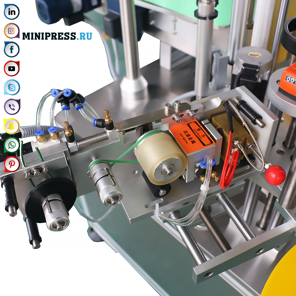 Автоматски систем за напојување со ленти за подвижни ленти. Системот автоматски се вклучува и ја влече етикетата од ролната и ја притиска етикетата. Компактна структура и лесно ракување. Фотоелектрични контролни елементи, точност на етикетирање, функција „без предмет - стоп“, автоматска контрола на етикетата што недостасува. Главниот дел од етикетата е направен од не'рѓосувачки челик SUS304. Способност да се користат различни големини на етикети. Системот на притискање на етикетата на површината на шишето избегнува воздушни меури. Поднесување етикети од ролна со влечен електричен мотор. Доколку е потребно, можете да ја додадете функцијата за печатење на сериите, броевите и датумите на производство. Опремата и материјалите што се користат во производството на не'рѓосувачки челик и легури со легури на високо ниво ги исполнуваат барањата за производство на ГМП.