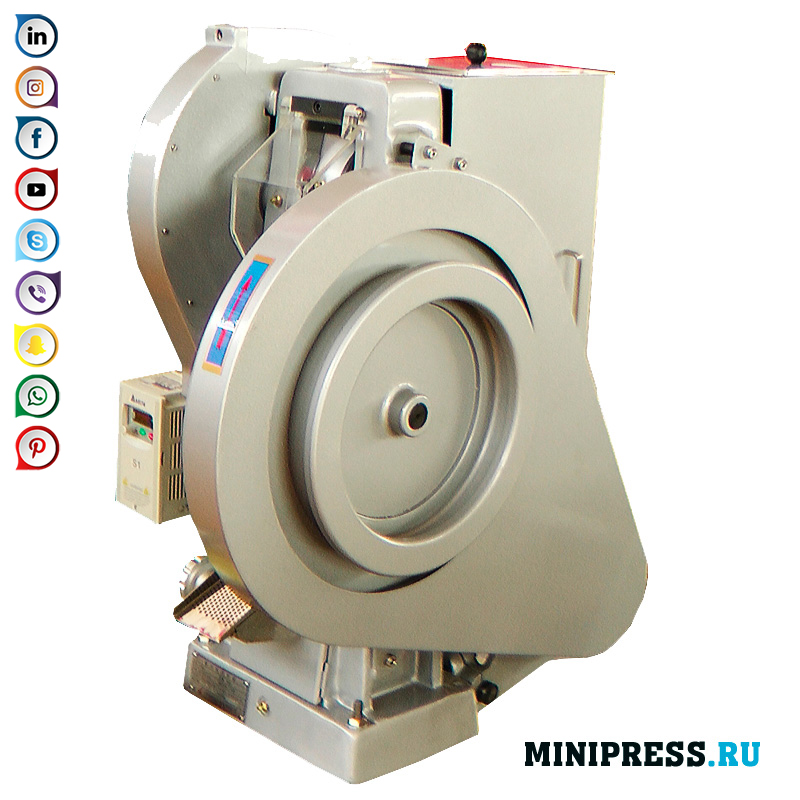 Преса за таблети што може да се користи во фармацевтската, хемиската и прехранбената индустрија, во металургија во прав за производство на таблети, брикети и болуси од рефус материјали. Од бункер за напојување, прав се мери во матрицата. Се користи директно притискање на прав и гранулирани материјали. Добивање на таблети се врши со две удари (горни и долни) во матрицата. Заменувањето на алатката за печат ви овозможува да произведувате таблети со дијаметар од 6 до 20 мм. Максималната висина на готовите таблети е 13 мм. Дизајнот на пресата предвидува инсталација на еден, два и три позициони удари, додека за еден циклус на притискање, 3 таблети со дијаметар од 7 мм, или 2 таблети со дијаметар од 10 мм или 1 таблети со дијаметар од 20 мм може да се добие. Пресот работи автоматски. Пред да го поврзете печатот во мрежата и да започнете со работа, мора внимателно да ја проучите видео-инструкцијата и да се запознаете со принципите на неговото работење. После тоа, неговото работење ќе стане разбирливо и едноставно за вас. Пресата има електричен мотор, како и тркало за дебагирање со рачка. Сите работи и прилагодувањата за прилагодување се прават во рачен режим со ротирање на тркалото. Бидете внимателни при поврзување на електричниот мотор, насоката треба да одговара на стрелката. Прашокот се става во преса преку бункер во форма на инка. Може лесно да се отстрани, мие и инсталира назад. Прав се храни од бункерот преку фидер. Кога пресот е ротиран, пудрата се внесува во матрицата, каде што се притиска и, тогаш, готовиот таблет се турка на површината. На контролното тело има контролна единица. Willе направиме сетови на алатки за печат нарачка (удари и умира за ротирачки преси за таблети).