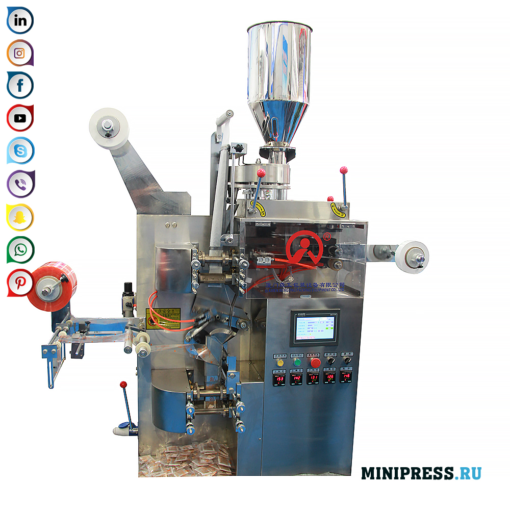 Label mesti dibeli dari pengilang, kerana mereka mempunyai tepi serong. Mesin melipatkan tab 2 kali. Bahan pembungkusan lain boleh didapati di mana-mana negara. Saya mengesyorkan agar anda memaklumkan pengeluar terlebih dahulu semua parameter produk anda - saiz beg, panjang benang, saiz label, berat dos teh.