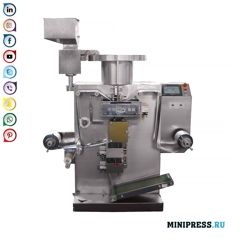 Vi pakker tabletter med en diameter på 12 mm i strimler på 10 stykker per pakke. Tablettene leveres med et vibrerende bord med guider. Denne AUT er av god kvalitet, men vi bestiller sjakter med riflet nett i Russland. Fra Kina passerer ikke sjakter termisk herding.