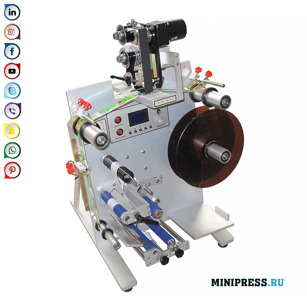 Оператер ручно поставља боце на ваљке, а затим притисне ручицу додатним ваљком. Систем се аутоматски укључује и извлачи налепницу из ролне и притисне налепницу. Компактна структура и лак рад. Фотоелектрични управљачки елементи, тачност означавања, функција „без објекта - заустављање“, аутоматско управљање налепницом која недостаје. Главни део машине за етикетирање је направљен од нерђајућег челика СУС304. Способност коришћења различитих величина налепница. Систем притиска етикете на површину кутије избегава мехуриће ваздуха. Пуњење налепница из ролне са наглим електромотором. Ако је потребно, можете додати функцију штампања серије, бројева и датума производње. Опрема и материјали који се користе у производњи нерђајућег челика и легура високих легура испуњавају захтеве ГМП производње.