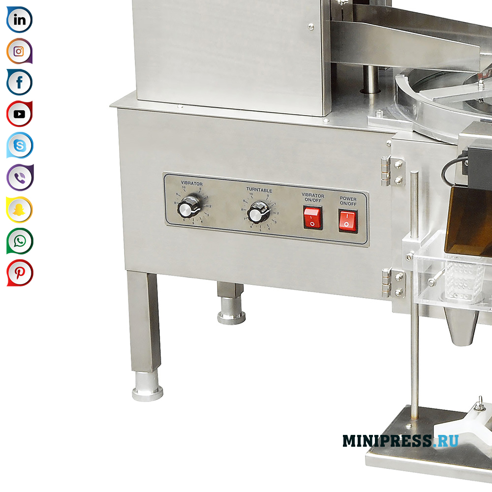 Број таблета и желатинских капсула које се могу подесити је 0-9999. Машине од нехрђајућег челика у складу са ГМП спецификацијама. Једноставан је за руковање и не захтева посебну обуку. Тачност израчуна израчунава се посебним електричним оптичким уређајем. Вибрацијски принцип пуњења за брз и гладак рад. Брзина бројања може се подесити у складу са брзином ручне замене боца са таблетама. Унутрашњост машине може бити опремљена усисивачем како би се избегла прашина на машини.