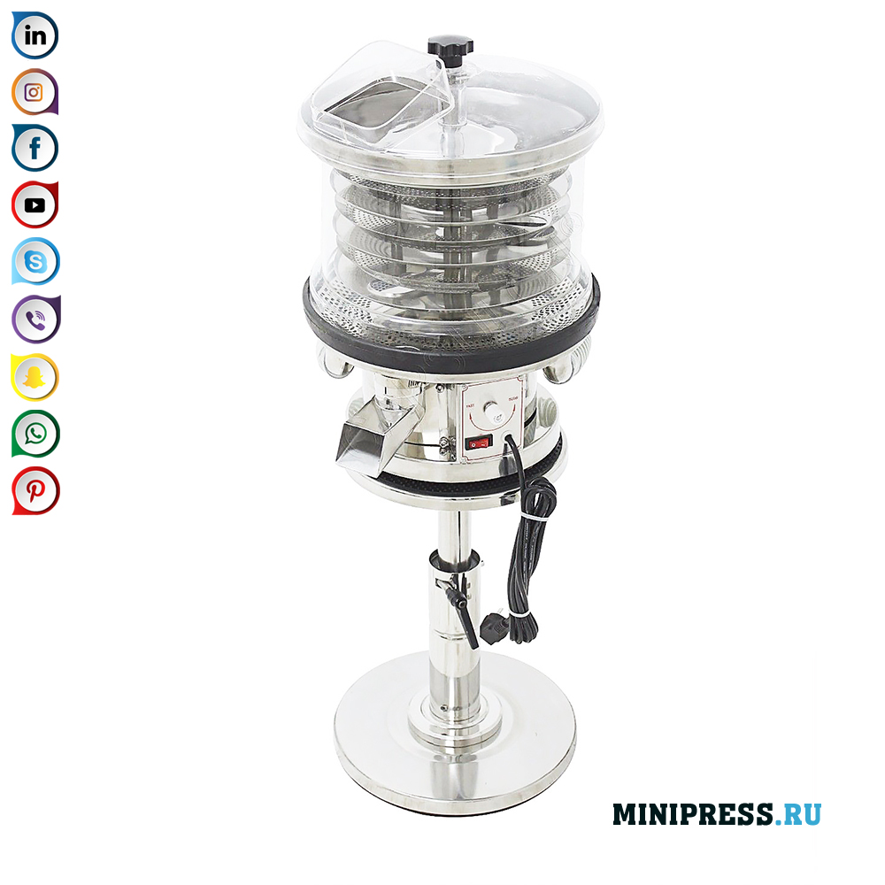 Shida na mashine mengi ya kibao ni kwamba katika mchakato wa kushinikiza na kusonga vidonge vilivyomalizika kutoka kwenye matrix hadi kwenye tank ya kuhifadhi, kibao kinawasiliana na poda iliyobaki. Kama matokeo, filamu ya vumbi inaunda juu ya uso wa vidonge. Katika siku zijazo, vumbi linachanganya utendaji wa mashine ya malengelenge na kujaza, na shida fulani zinaonyeshwa wakati wa kujaribu kufunika vidonge vumbi na ganda. Suluhisho la kuondoa vumbi kutoka kwa vidonge ni polisher inayojumuisha na yenye utendaji wa juu. Msingi wa vifaa ni juu ya msaada wa mpira, ambayo hupunguza kelele wakati wa operesheni na densi viboresha. Vibrator ya sumakuumeme imewekwa kwenye msingi na frequency inayoweza kubadilishwa ya amplillation ya oscillation. Shoka ya msingi imeunganishwa na vibrator. Pia kuna muundo fulani wa sahani zilizokamilishwa, na mfumo wa vidonge kusonga kutoka ngazi moja kwenda nyingine. Mfumo wa sahani huwekwa katika kesi ya uwazi ya plastiki; kifuniko kilicho na shimo la kupakia vidonge vumbi vimewekwa juu. Chini zilizowekwa chini ya kuunganisha bomba la utupu, na nyumba ya plastiki imewekwa na mfumo wa hoses wa kusambaza hewa iliyoshinikizwa ndani. Kanuni ya operesheni, vidonge ni kubeba ndani ya dirisha la ulaji, vibration huwashwa, vidonge huanza kusonga kutoka ngazi moja ya sahani hadi za chini, kupita kwenye sahani ambazo vidonge husafishwa, kwa kuwa hewa na vumbi hutolewa kupitia utakaso. na safi ya utupu. Katika kiwango cha chini, mtiririko wa hewa kutoka kwa compressor (haijumuishwa) hatimaye hupuka kutoka kwa vumbi na kuacha nje safi. Tunasambaza simu ya ziada ya darasani ya 500. Tunapendekeza kutumia utupu na utununue mwenyewe.