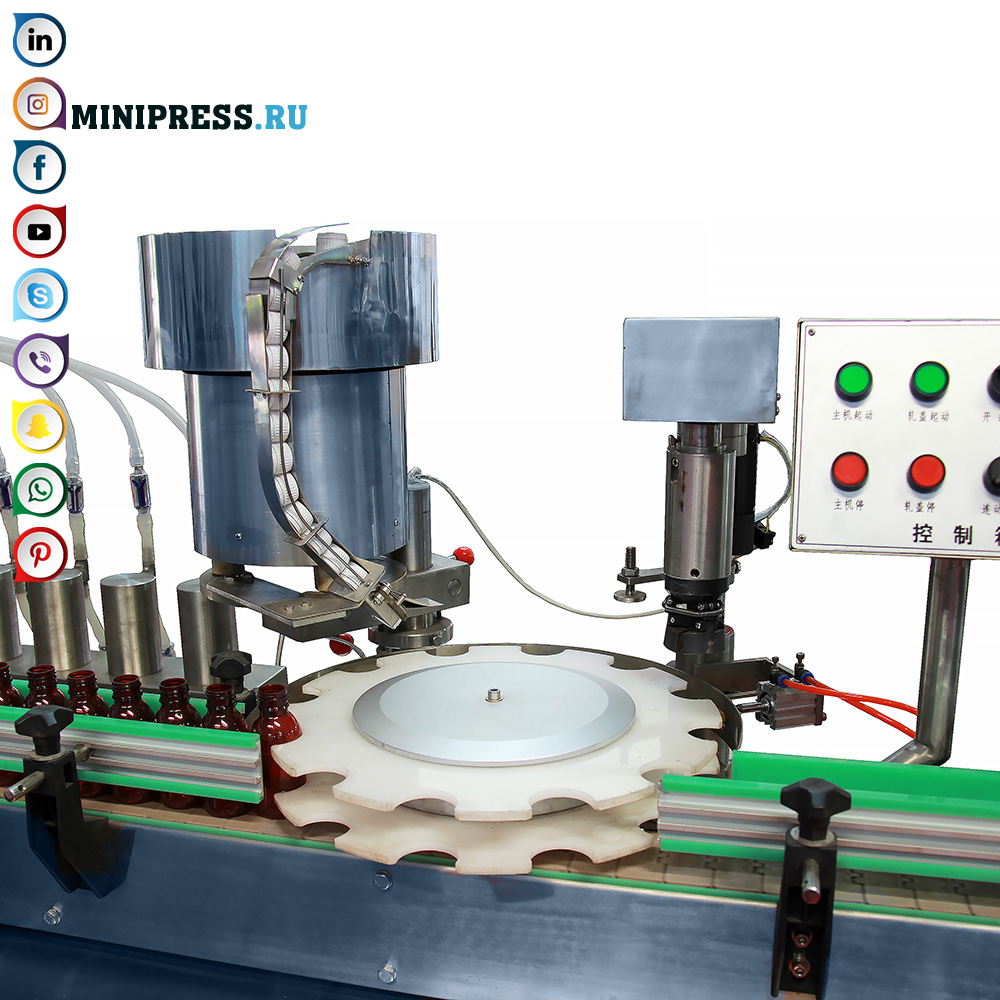 Sistem boş plastik veya cam şişeleri ayrı ayrı şişeleri doldurma birimine taşıyan bir taşıma bandına besler. Makine bir seferde dört şişe doldurur. Optik sensörler flakonların varlığını izler. Şişe yoksa, şişeleme yoktur. Kümülatif titreşimli haznelerden, kapaklar, şişelerin kapaklarla kapatıldığı kapatma birimlerine beslenir ve kapaklar, döner kafalar kullanılarak mekanik olarak vidalanır. Hazır şişeler ek bir taşıma bandı ile çıkarılır. MMakine, 10-250 ml'lik bir hacimde plastik şişeleri doldurmak ve mühürlemek için kullanılan, oral çözelti için bir konveyör hattı üzerinde bir doldurma cihazıdır.. Doldurma ve mühürleme işlemi, gelişmiş tasarımı ve kompakt yapısı ile bu makinede birleştirilmiştir.. Şişelerin stabilitesine büyük önem verilmektedir. Bu ekipmanın satın alınmasına karar vermek için, ekipman üreticisinin bir temsilcisine fotoğraf ve boyutta şişe ve kapaklar göndermenizi öneririz..
