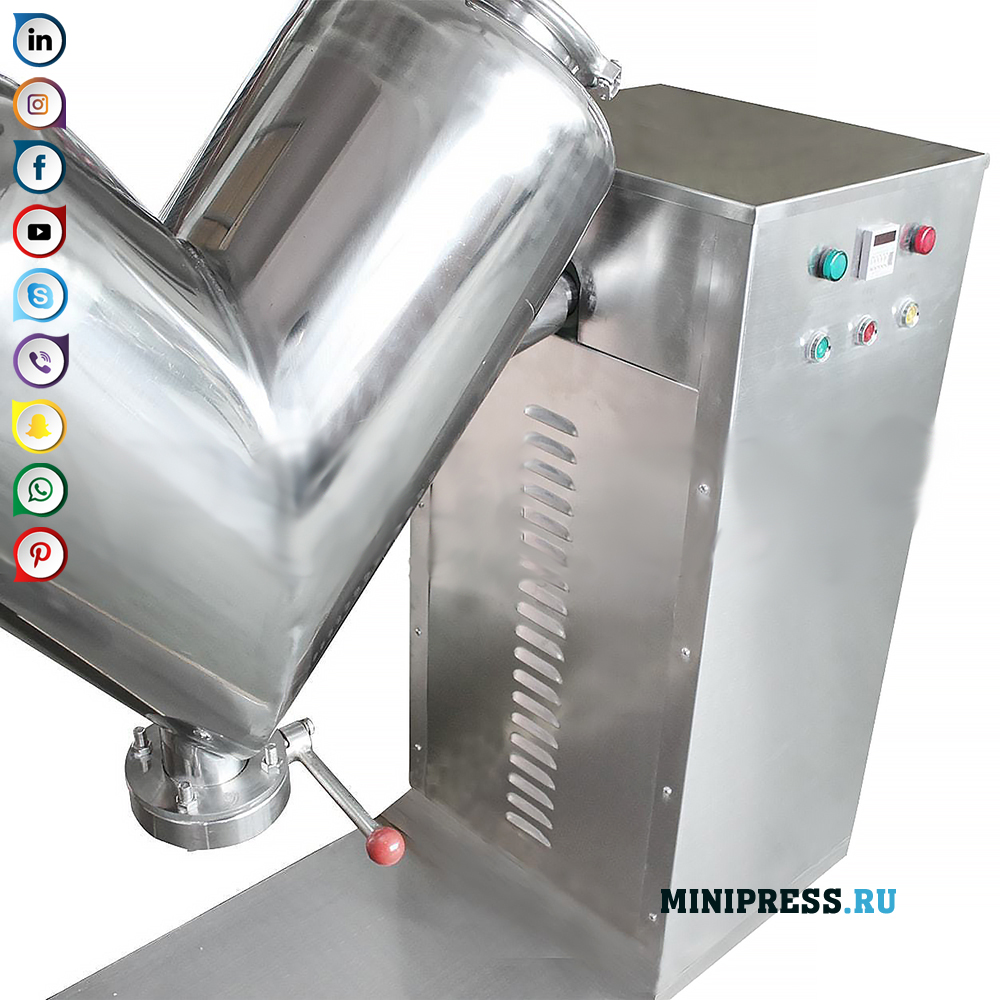 Mikser zanglamaydigan po'latdan yasalgan. V shaklidagi kukun aralashtirgichlari quruq quyma kukunlarni aralashtirish uchun javob beradi. Aralashning yuqori samaradorligiga asosiy tank ichidagi barglari bilan aylanadigan milning mavjudligi erishiladi. Asosiy tank bir daqiqada 12 aylanish tezligida aylanadi, ichki mil esa daqiqada 1500 aylanish tezligida tankning aylanishini qondirish uchun aylanadi. V shaklidagi mikserlardan eng yaxshi model. V shaklidagi yuqori samarali mikserda yuqori tezlikda va minimal aralashtirish vaqtiga ega bo'lgan silindrlarda ko'r dog'lar yo'q. Jilo zanglamaydigan po'latdan yasalgan ichki va tashqi devorlari oqlangan ko'rinishga ega. Changni tushirish va tushirish qo'lda yoki vakuumli konveyer yordamida amalga oshirilishi mumkin. Kukunni bo'shatish uchun tezkor bo'shatish klapanlari mavjud. Ushbu mikser farmatsevtika va boshqa sohalarda chang materiallarini aralashtirish uchun ishlatiladi. Elektr dvigatelidan mil harakatga keltiriladi. Quruq quyma kukunlarni aralashtirish uchun eng yaxshi sanoat moslamasi.