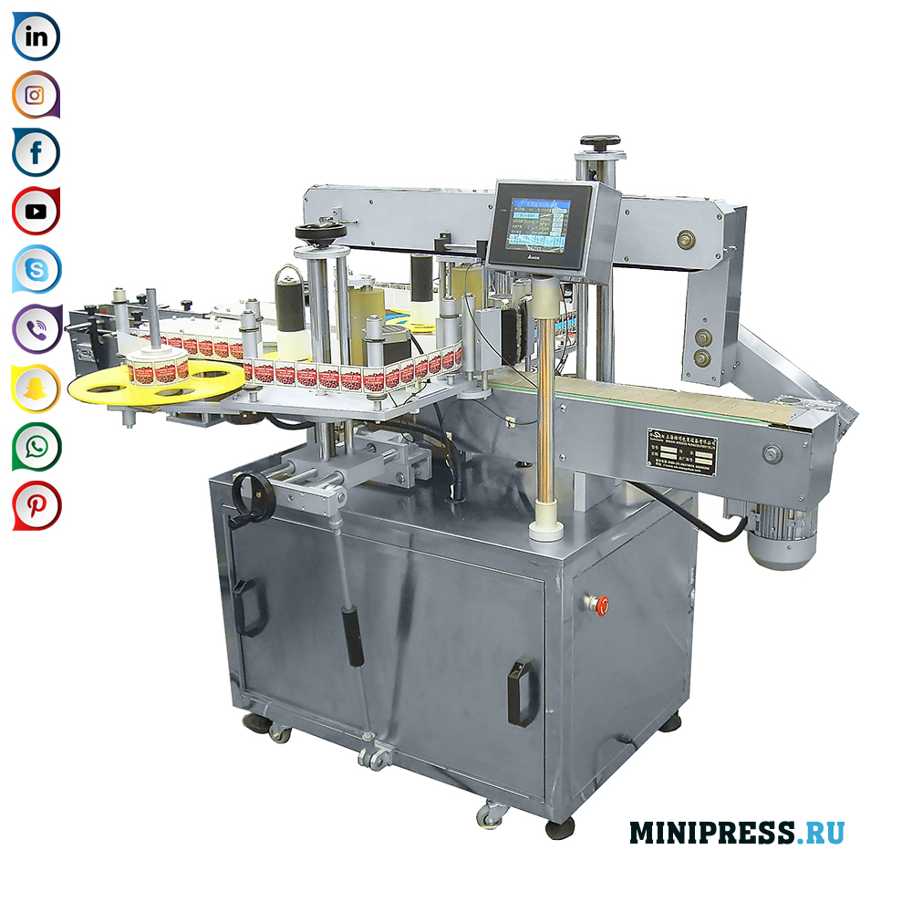 Avtomatik konveyer yordamida idishlar yo'naltirilib, o'z-o'zidan yopishtiriladigan yorliqlarning stiker maydoniga o'tkaziladi. Tizim avtomatik ravishda yoqiladi va yorliqni rulondan olib, yorliqni bosadi. Yilni tuzilish va oson ishlash. Fotoelektrik boshqaruv elementlari, etiketkaning aniqligi, "ob'ekt yo'q - to'xtatish" funktsiyasi, yo'qolgan yorliqni avtomatik boshqarish. Yorliqlash mashinasining asosiy qismi SUS304 zanglamaydigan po'latdan yasalgan. Turli o'lchamdagi yorliqlardan foydalanish qobiliyati. Yorliqni qutining yuzasiga bosish tizimi havo pufakchalarini chetlab o'tadi. Bosqichli elektr motorli rulondan etiketkalarni to'ldirish. Agar kerak bo'lsa, seriyalar, raqamlar va ishlab chiqarish sanalarini bosib chiqarish funktsiyasini qo'shishingiz mumkin. Zanglamaydigan po'lat va yuqori qotishma qotishmalarini ishlab chiqarishda ishlatiladigan asbob-uskunalar va materiallar GMP ishlab chiqarish talablariga javob beradi.