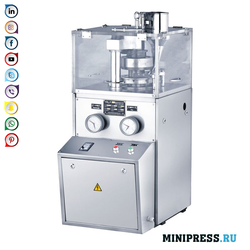 Mô hình này phù hợp cho các công ty nhỏ, nhà sản xuất đầu tiên, các tổ chức giáo dục, khoa học sử dụng máy ép quay để ép các lô máy tính bảng quy mô nhỏ hoặc thử nghiệm, cũng như phương tiện gỡ lỗi trong quy trình sản xuất và chọn các thành phần cần thiết cho ép viên. Máy ép quay nhỏ gọn và dễ cài đặt. Model RZ-9 là máy ép sàn quay thuộc loại băng chuyền. Sơ đồ của máy ép là để truyền, bằng hộp số, quay từ động cơ điện sang ròng rọc, trên trục có rôto. Báo chí được thiết kế để nén trực tiếp máy tính bảng. Năng suất 17.200 viên mỗi giờ. Mô hình này đi kèm với một bộ khuôn: khuôn có đường kính khác nhau (từ 6 đến 13 mm) và đục lỗ. Các cú đấm với một cơ thể dài là trên và được cài đặt ở phần trên của báo chí. Một cú đấm với thân ngắn và phần hoạt động dài là đáy và nhiệm vụ của nó là đẩy máy tính bảng ra khỏi ma trận. Chúng được cài đặt ở dưới cùng của báo chí. Báo chí chỉ hoạt động ở chế độ tự động. Trước khi kết nối báo chí với mạng và bắt đầu công việc, bạn phải nghiên cứu kỹ hướng dẫn bằng video và làm quen với các nguyên tắc hoạt động của nó. Sau đó, hoạt động của nó sẽ trở nên dễ hiểu và đơn giản cho bạn. Báo chí có một động cơ điện, cũng như một bánh xe gỡ lỗi có tay cầm. Tất cả các công việc điều chỉnh và cài đặt được thực hiện ở chế độ thủ công bằng cách xoay bánh xe. Cẩn thận khi kết nối động cơ điện, hướng phải tương ứng với mũi tên. Bột được nạp vào máy ép thông qua phễu có thể tháo rời. Nó có thể dễ dàng loại bỏ, rửa và cài đặt trở lại. Bột được cho ăn từ phễu thông qua bộ nạp. Khi rôto của máy ép quay, bột được đưa vào ma trận, tại đó nó được ép và sau đó, viên hoàn thành được đẩy lên bề mặt. Có một bộ phận điều khiển trên cơ thể báo chí.